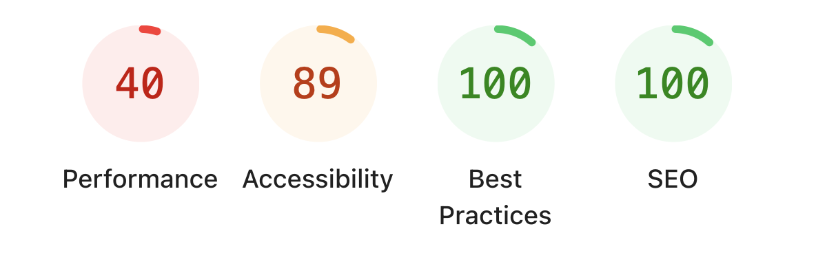 제가 진행중인 프로젝트도 비슷한 문제를 겪고 있었습니다. 초기 Lighthouse 측정 결과 성능 점수는 40점에 불과했고, 특히 LCP와 TBT 지표가 매우 좋지 않았습니다. 사용자 경험을 개선하기 위해 전면적인 SSR 최적화 작업이 필요한 상황이였습니다.